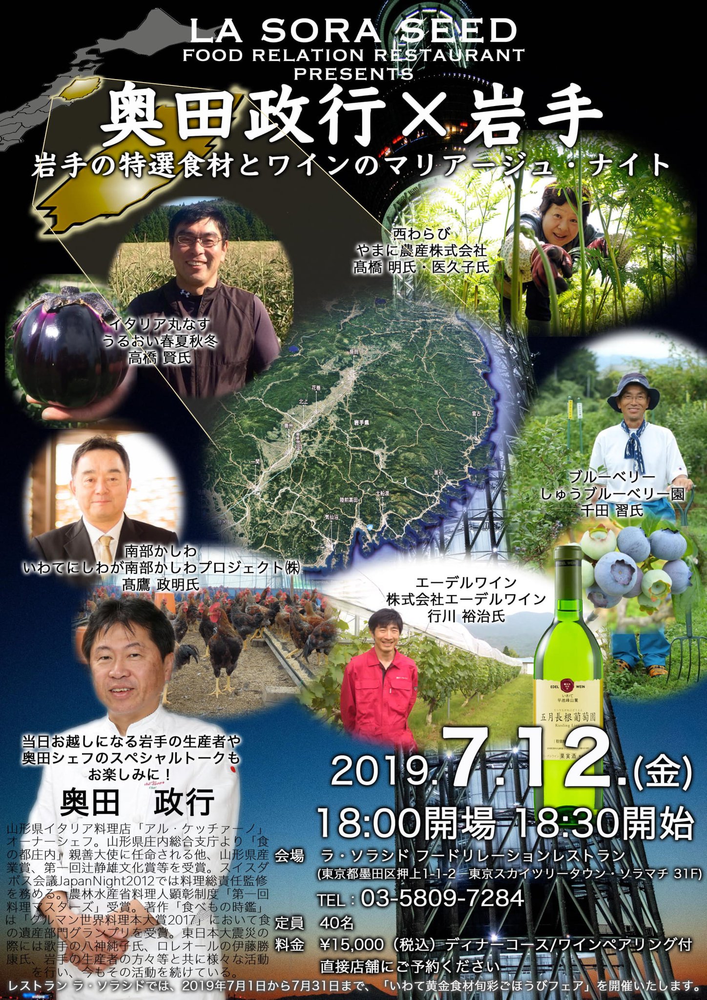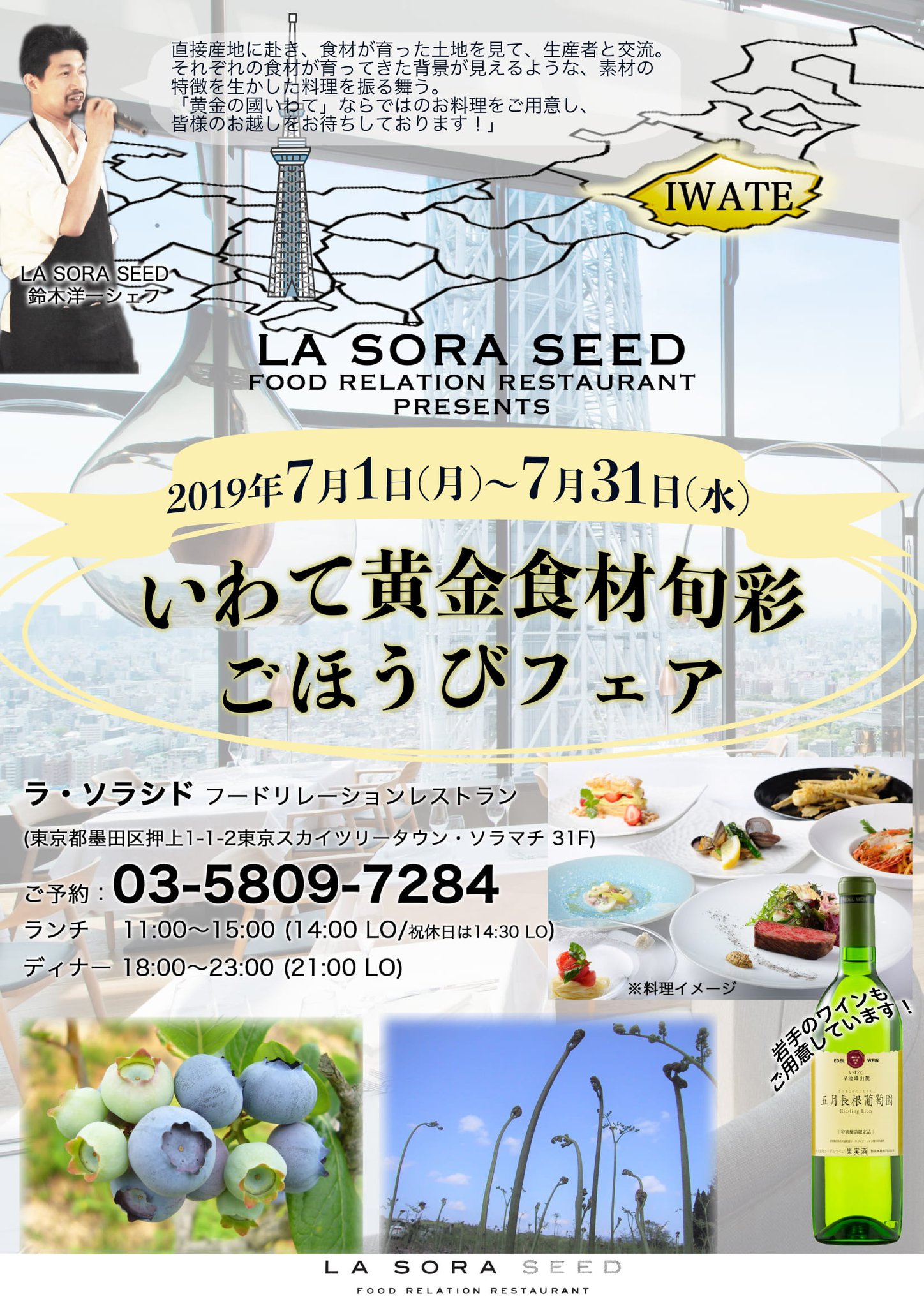 先日ラ・タヴェルナとコラボした東京スカイツリータウンソラマチ31階のラ・ソラシド フードリレーションレストランにて、南いわての初夏の厳選食材をフルコースで堪能できる一夜限りのスペシャルイベントを開催します! 岩手のワイナ …